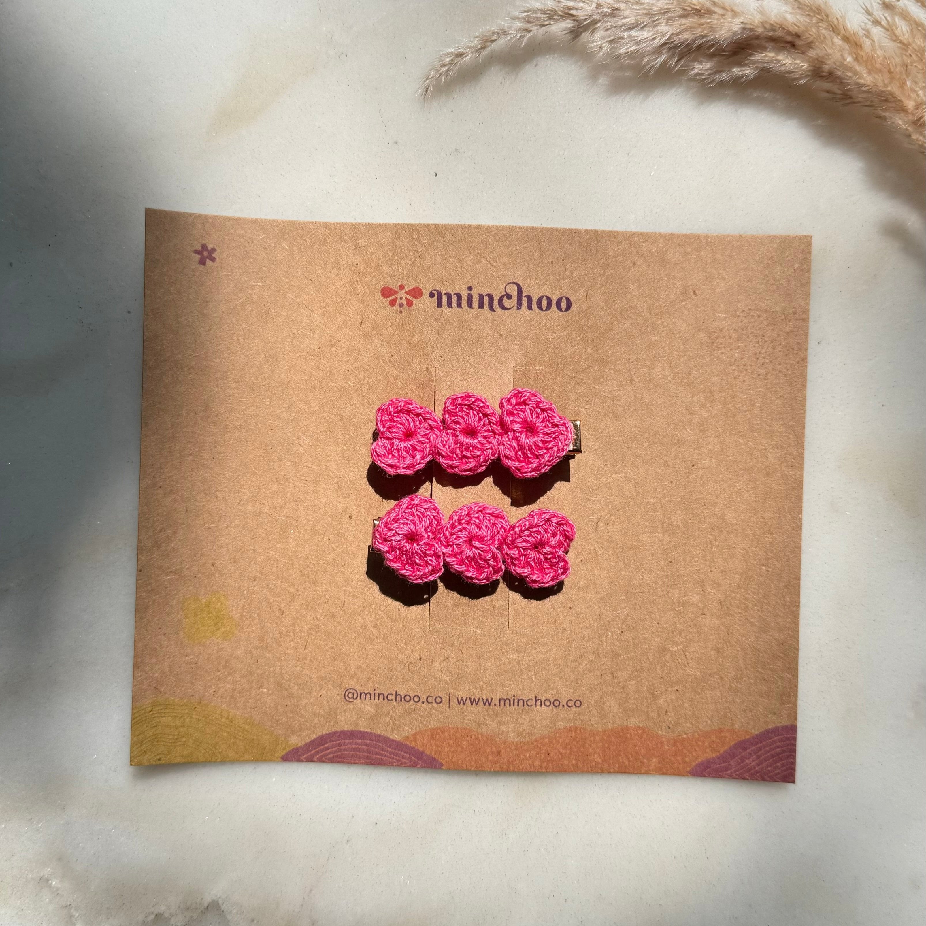 Girl's Crochet Pink Heart Hairclips