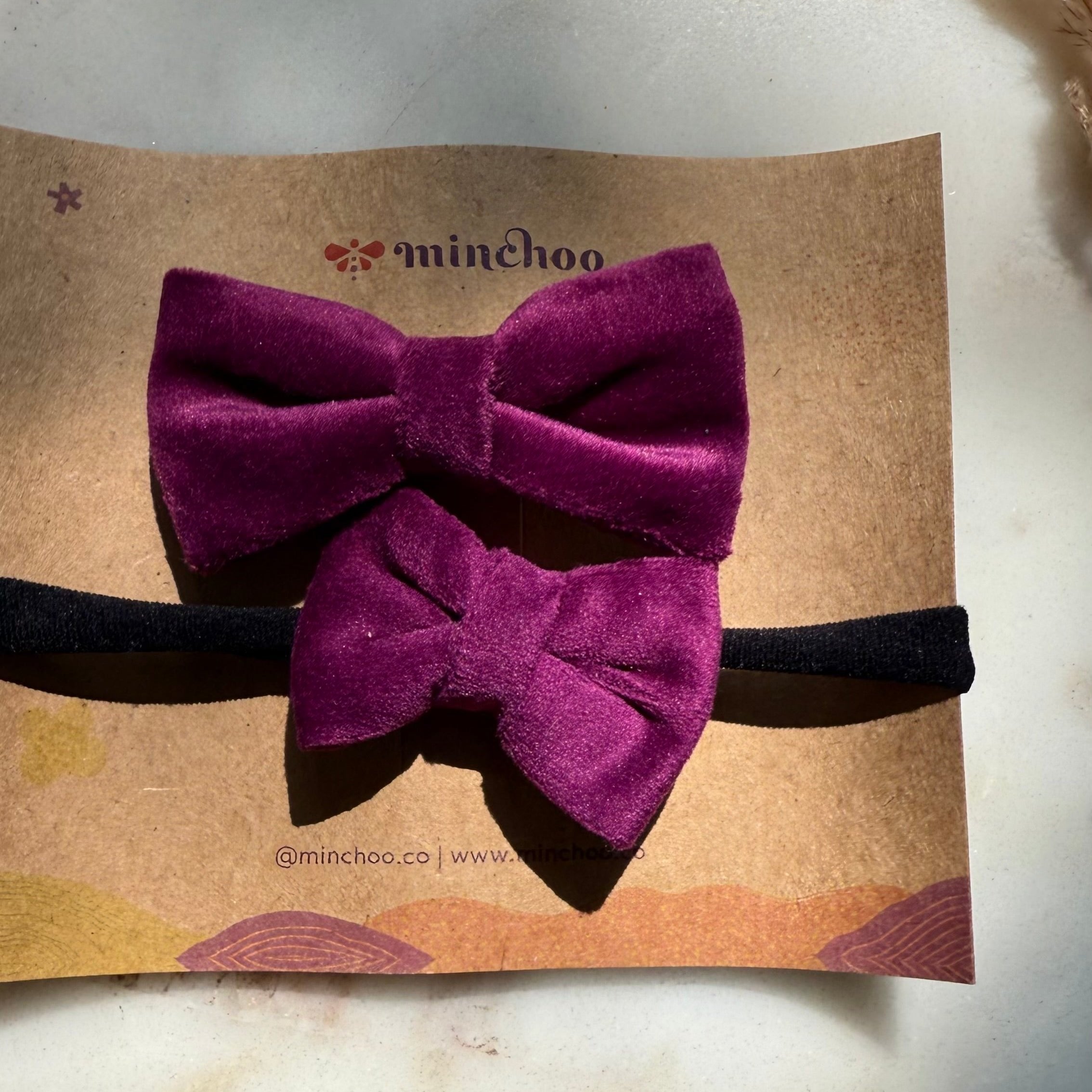 Girl's Purple Velvet Party Hairbow and Hairclip