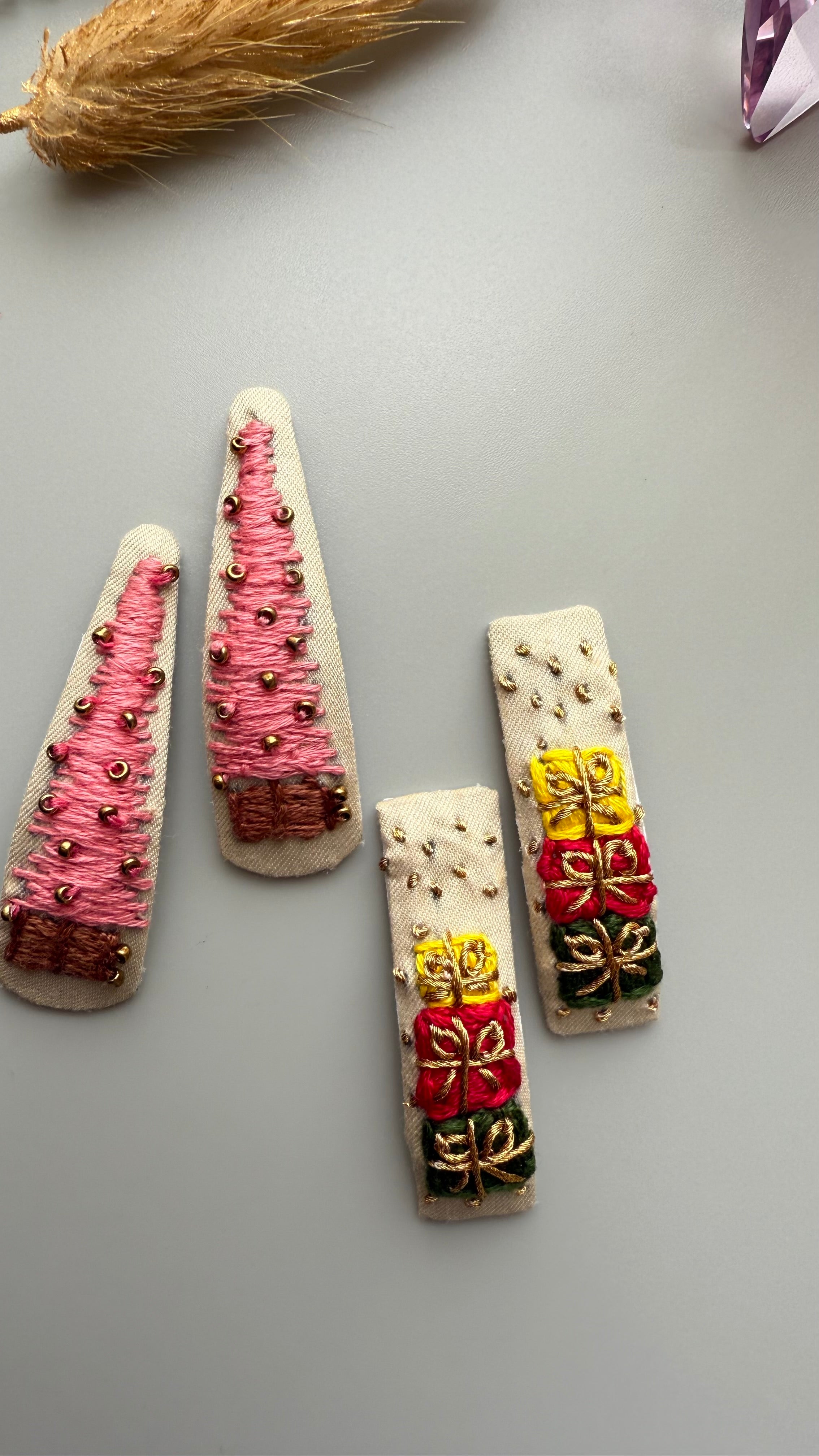 Hand embroidered Christmas Hairclips - Gift boxes & Christmas
