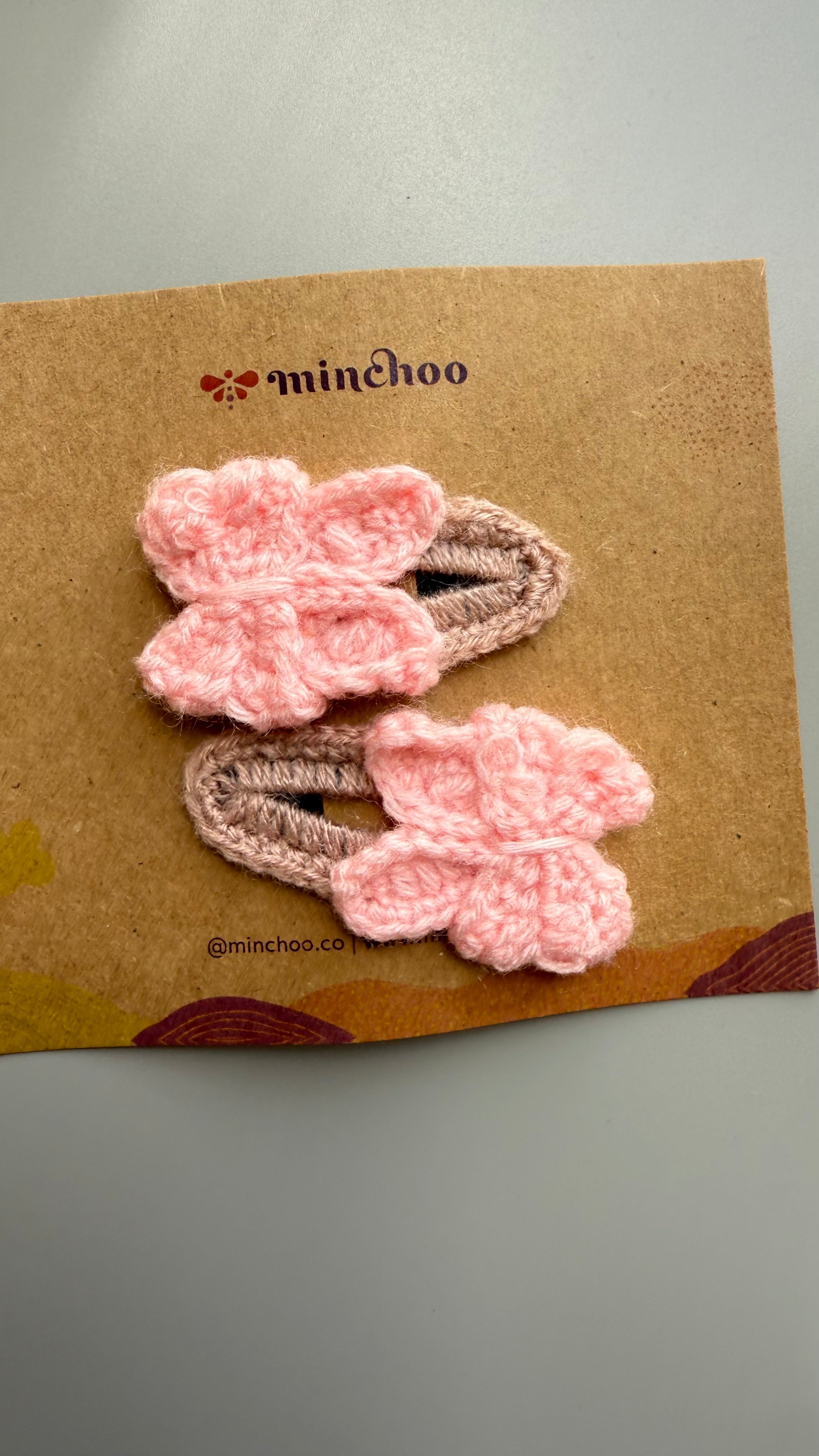 Handmade crochet butterfly hairclip in light pink